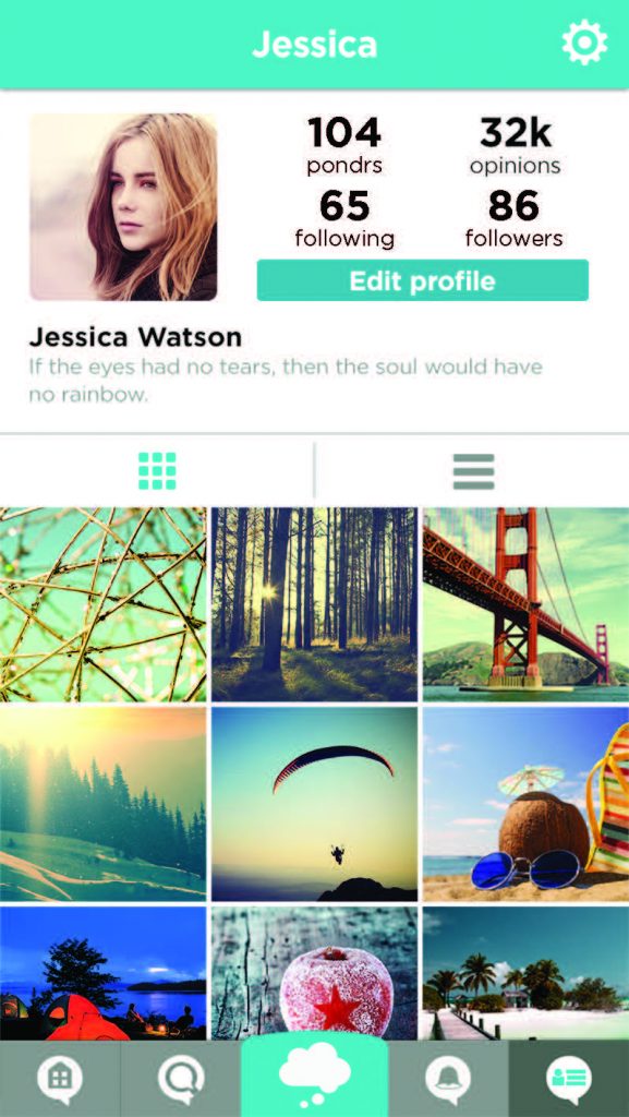 Pondr’ın diğer sosyal ağlardan en belirgin farkı, fikir üretimi ile görsel içerik üretimini aynı bünyede buluşturarak kullanıcılar arasındaki etkileşimi en yüksek seviyeye çıkarması. Kullanıcılar, çektikleri ya da internetten aldıkları fotoğrafı Pondr’a yerleştiriyor ve altında duygu ikonları (emoji) ya da kendi sözcüklerini kullanarak iki seçenek oluşturuyorlar. Takipçileri ise bu iki seçenekten birini onaylayarak ve isterlerse yorum ekleyerek aynı içerikle ilgili kendi fikirlerini beyan ediyor.  Pondr’da sosyal ağ kullanıcılarının çok sevdiği hashtag, geotag, mention özelliklerine ek olarak anında mesaj ve fotoğraf filtreleme fonksiyonları ile çok zengin bir etkileşim ve sosyalleşme ortamı sunuluyor.